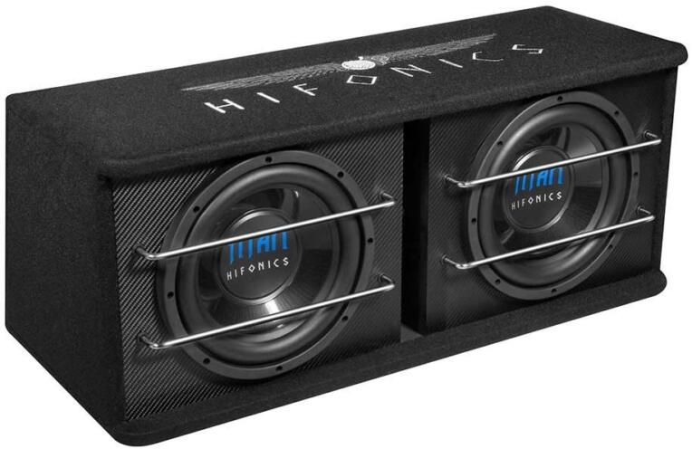 2 x 20 cm-es mélysugárzó láda, bassreflex házban, 400 WRMS @ 4 + 4 ohm